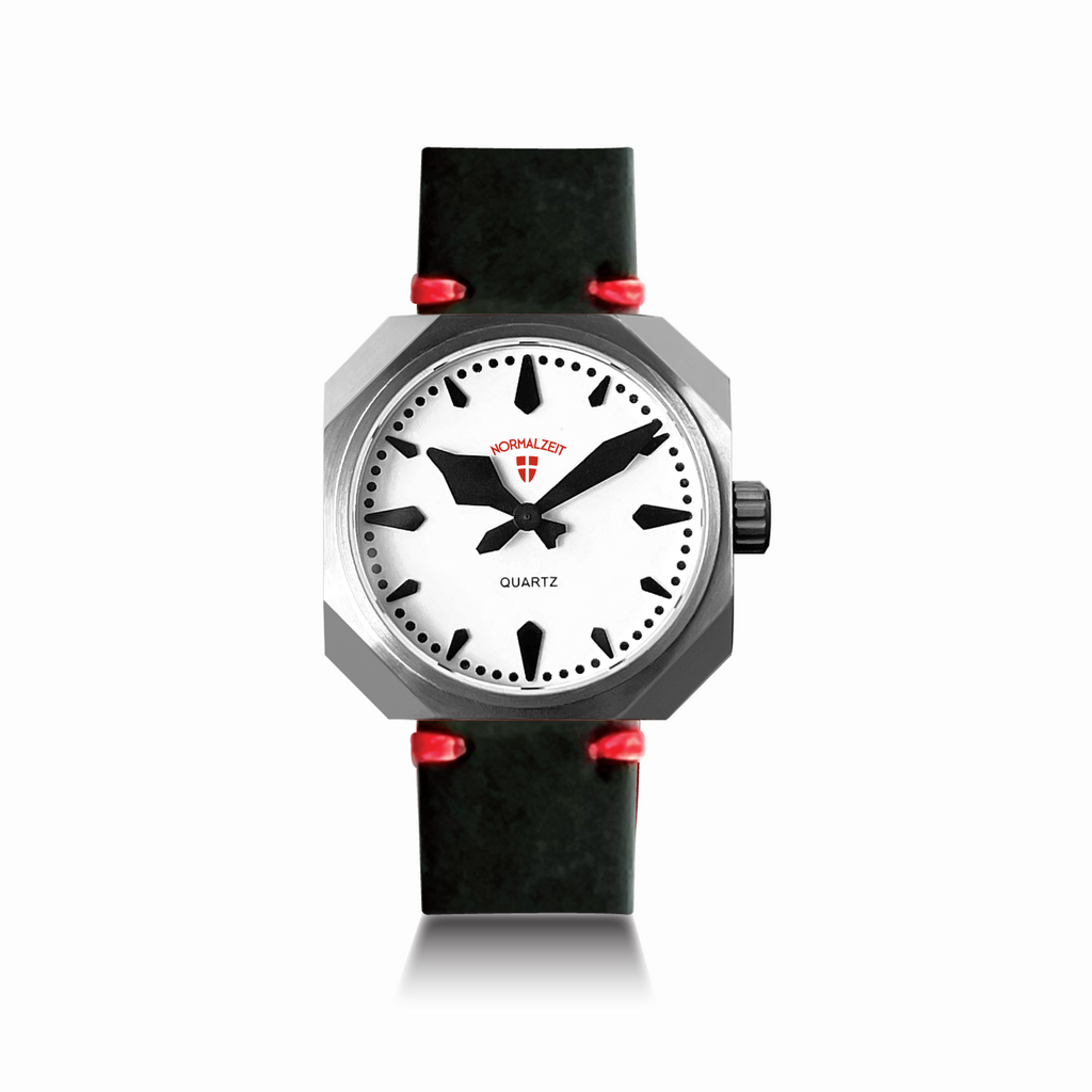 Olive Vienna Leather Strap w/ cream contrast stitch, SS Buckle
