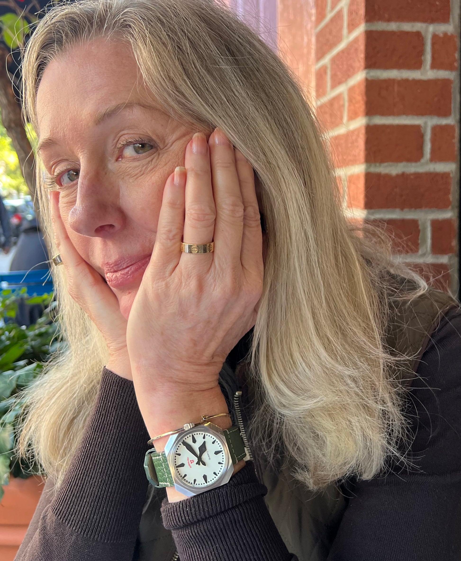 Saddle Brown Vienna Leather Strap w/ cream contrast stitch, SS Buckle